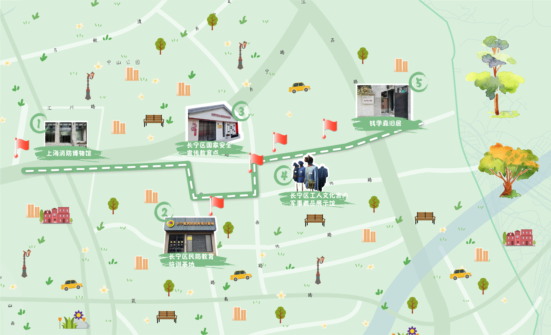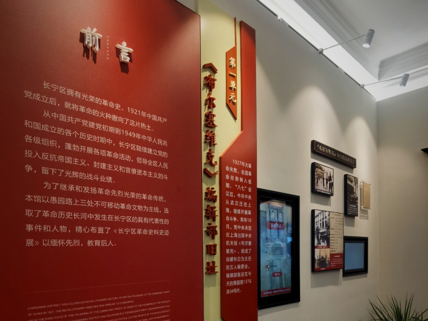 愚园路是上海64条永不拓宽的马路之一,这里梧桐成荫,风格各异的花园洋房或是新式里弄散布在两侧悠长深邃的弄堂里。这里历史建筑荟萃,名人故居集中,其中不乏众多红色纪念地。这条行程的起点即位于江苏路389弄21号的中共中央上海局机关旧址,这处砖木结构的假四层新式里弄住宅在1947年1月以后成为中共中央上海局的秘密机关直至上海解放。这里表面上是由党员王辛南以私人名义租下,并由张执一、方行两家老幼迁入居住,作为掩护。上海局的一些重要会议和活动都曾在此进行。继续沿着愚园路西行,愚园路历史名人墙是一处常年向市民开放的微型城市记忆博物馆,精选了58位曾在愚园路留下身影的近现代各界名人进行介绍。紧接着来到位于岐山村的钱学森旧居,这条弄堂同时也是作家施蛰存的故居。愚园路1315弄4号曾是国际友人路易·艾黎在沪的居所,如今在其居所旁新建成的路易·艾黎微展厅向观众介绍了路易·艾黎的生平以及发生在1315弄里的革命义举。路易·艾黎故居对面,是先施和永安两大公司合建于1925年的带有外廊式风格的里弄,弄内34号曾是中共中央机关刊物《布尔塞维克》的编辑部。